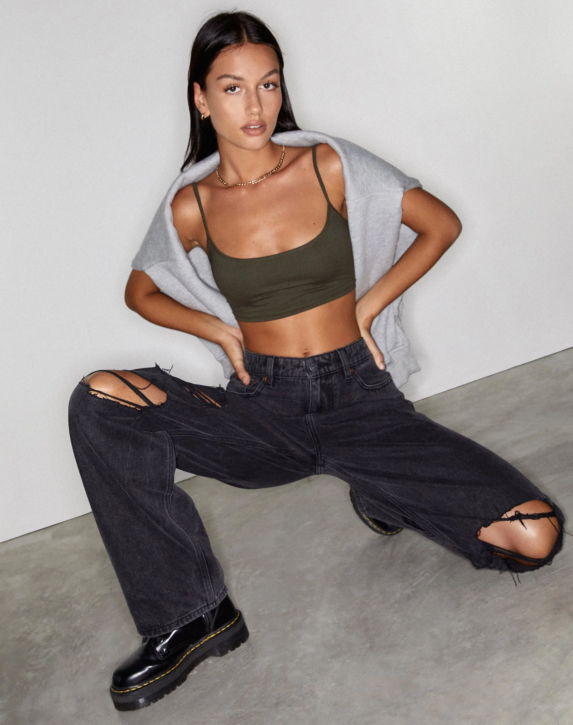 Super flattering high-waisted fit with a wide leg and ripped detailing.